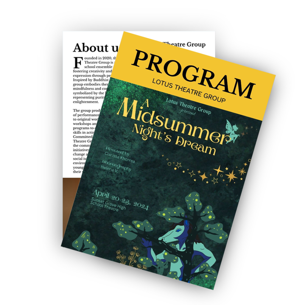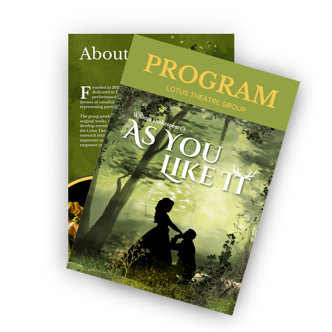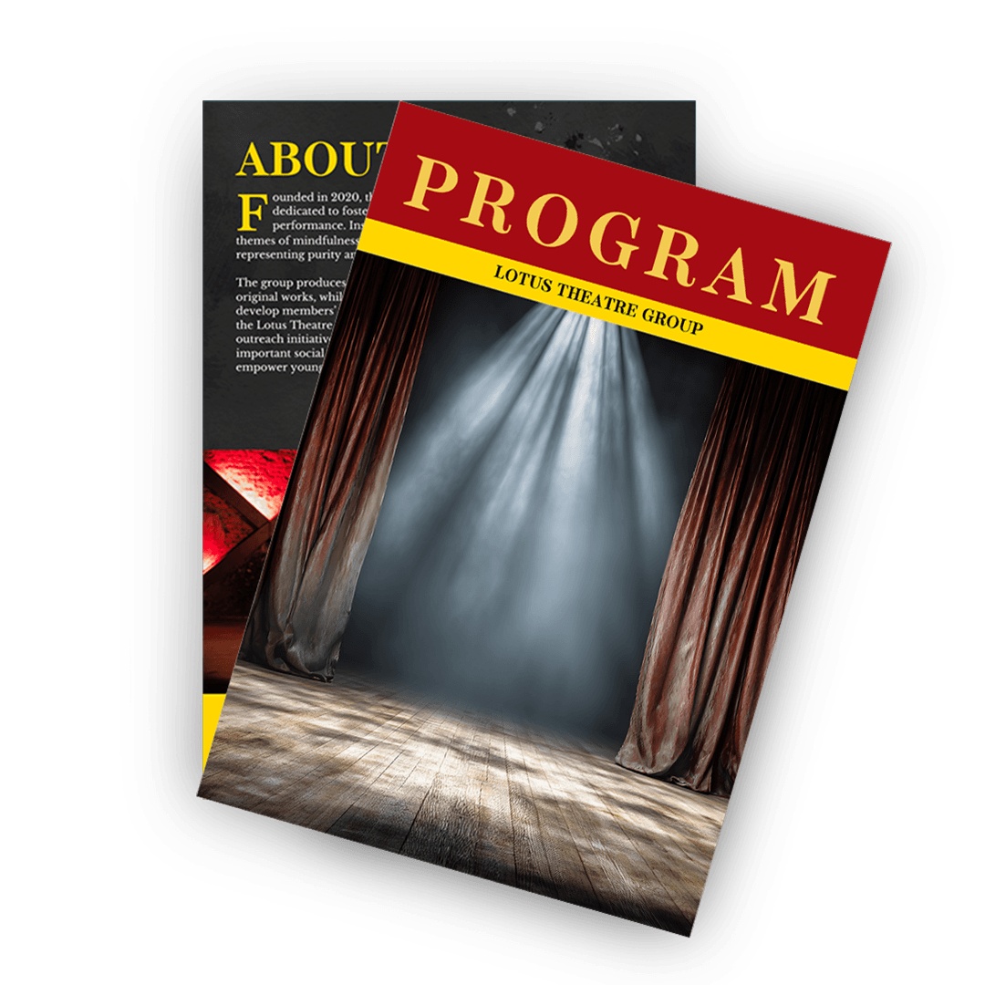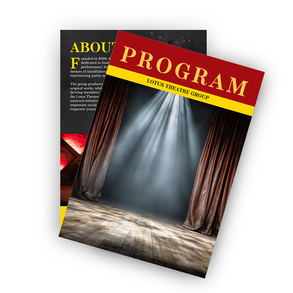 Did you know? You can reuse one playbill template for all your shows — just swap the colours and titles. Our generic program design was made to evolve with you, no matter what show comes next.