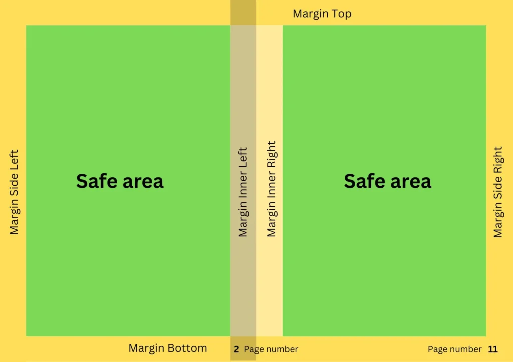 Get the centre of an A4 size, and you can set the top and bottom, left and right margins to half an inch. To pull the margin lines, go to File, then Settings, and click “Show ruler and guides.” If you already see the ruler, you just have to drag it to the desired position. Once everything is positioned, make sure to lock it to avoid messing it up (File → Settings → Lock guides).